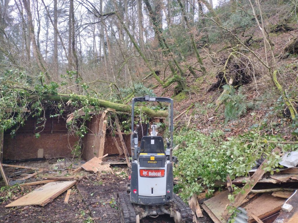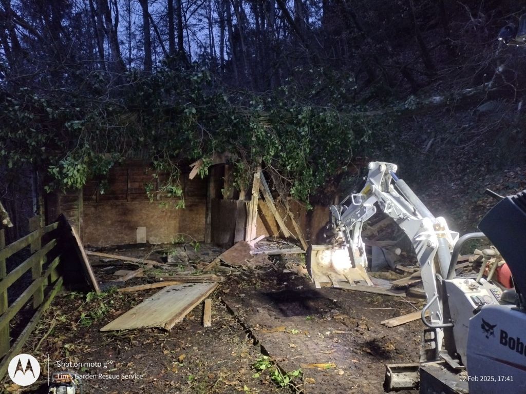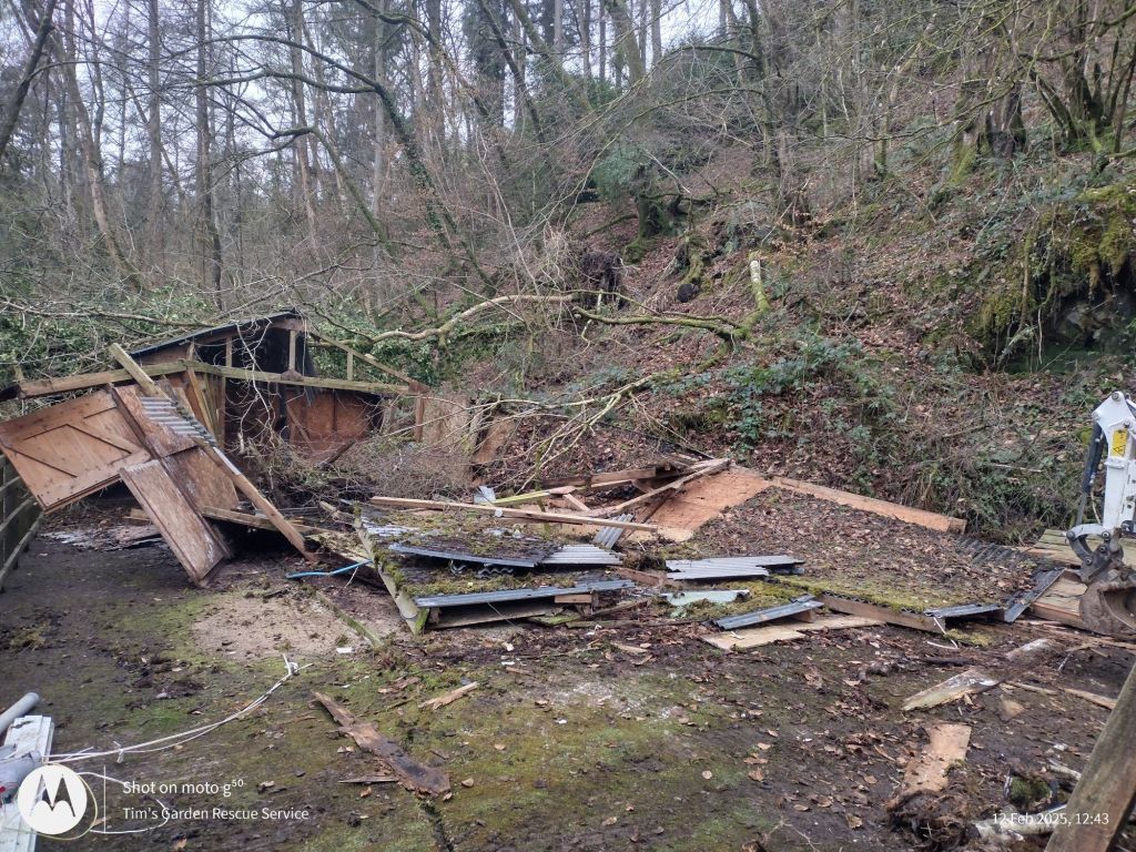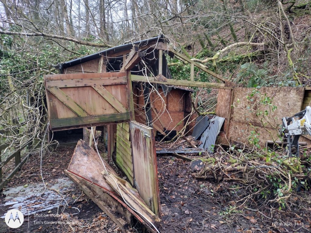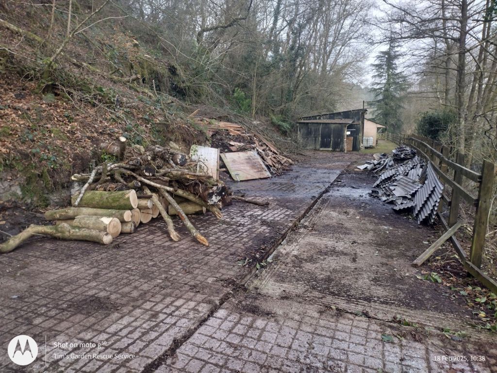 Big job last week sorting out this stable block after Storm Darragh blew some trees onto it.   I initially intended to save some of the wood for future purposes, but as I sorted through it I found that the majority of it was riddled with woodworm and rot, so it all had to go.  😥  I separated out the different materials and left them for the clients to get rid of.  Like the corrugated concrete asbestos roof and plastic roof sheeting. 👍