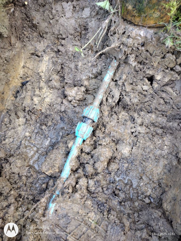 Repairing a broken water pipe and cleaning out a ditch..